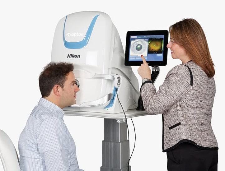We use the Optos system. It’s the same calibre of equipment used by hospital eye specialists but conveniently located at your friendly high street practice. This remarkable technology captures 200 degrees of your retina in a single image, far more than traditional photography.